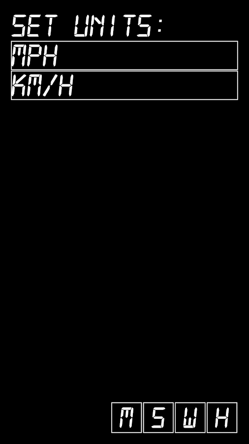 S = parametrlər - metrik sistemi seçimi (km / h) və İmperial / Amerika sistemi arasında (mph)