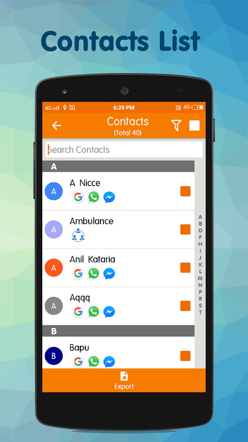Kontaktlarınızın səhvən silinib itməsinin qarşısını almaq üçün bu tətbiqdən mütləq istifadə etməlisiniz. Tətbiq ilə kontaktlarınızın ehtiyyat nüsxəsini alaraq istədiyiniz telefona və ya səhvən silindikdən/ formatdan sonra elə həmin telefona geri qaytara bilərsiniz.