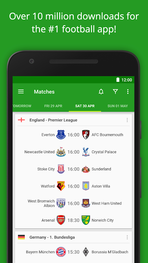 Soccer Scores Pro FotMob tətbiqi dəstəklədiyiniz komandaların xəbərlərini, oyunlarını, çempionatlarda, kuboklardakı sırasını aydın bir şəkildə sizə təqdim edən bir futbol tətbiqidr. Bu tətbiq sayəsində bütün dünyada keçirilən futbol qarşılaşmalarının hesablarını canlı şəkildə izləyə bilərsiniz. Bu tətbiqlə təxminən 200`dən çox ölkənin çempionatlarındakı matç hesablarını, turnir cədvəlini izləyə bilərsiniz. Canlı matçlarda hər hansı bir hərəkət (qol, kart, cərimə, oyunçu dəyişikliyi) dərhal tətbiqdə qeyd edilir. Qol vurulduğu zaman qolu vuran və asissti edən oyunçunun adını, qolun vurulma vaxtını həmin saniyə görə bilərsiniz. Qeyd edək ki, təxminən 10.000.000 insanın istifadə etdiyi bu tətbiqin Play Store`da qiyməti $3.16`dır. Soccer Scores Pro – FotMob aşağıdakı linkdən pulsuz yükləyə bilərsiniz.